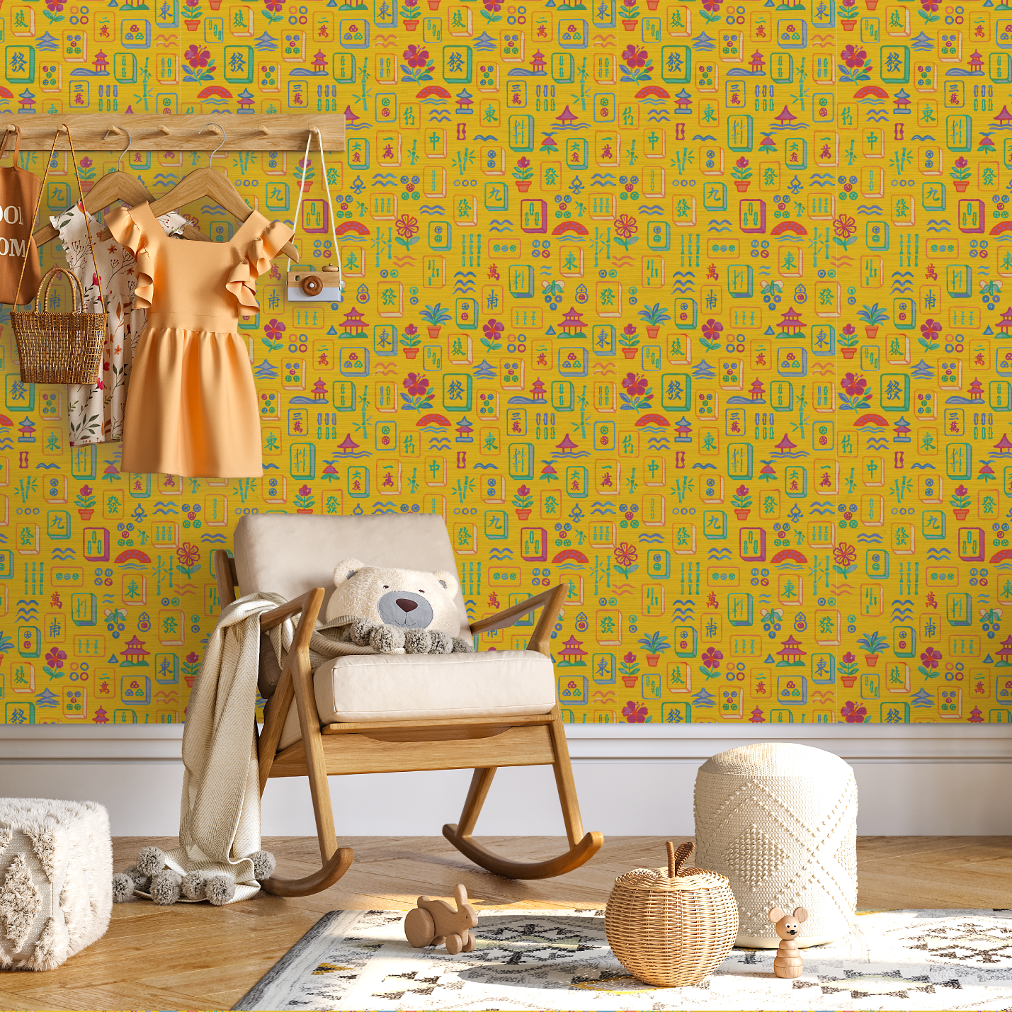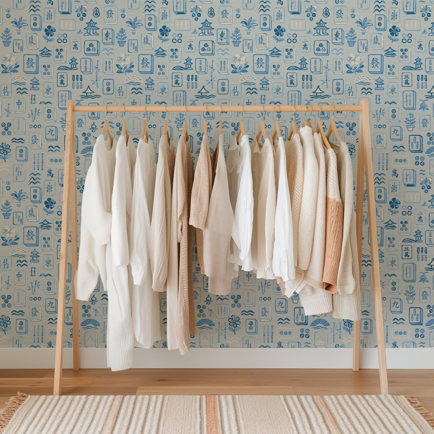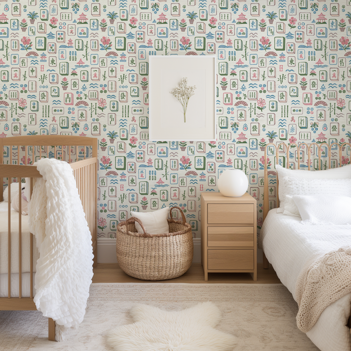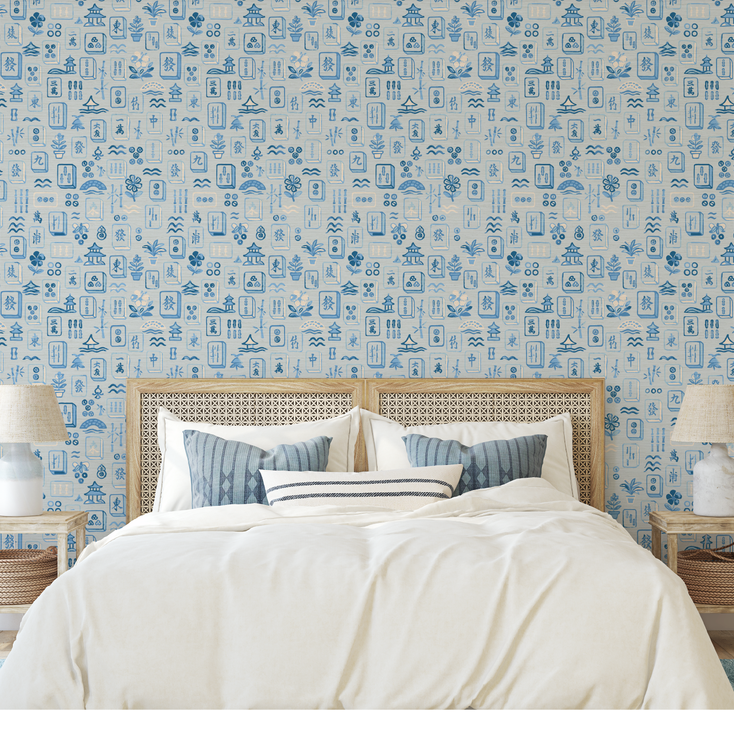 Meet Maison Mahjong, a painterly wallpaper that plays like a love letter to leisure. Hand-drawn in soft brushstrokes of blush pink, jade green, and seaside blue, each tile captures the joy of a timeless game reimagined through an artist’s eye. Potted palms, pagodas, and floating blossoms dance across a sun-washed ground, creating a print that feels both nostalgic and delightfully unexpected. Perfect for spaces that crave charm, color, and a wink of wanderlust.